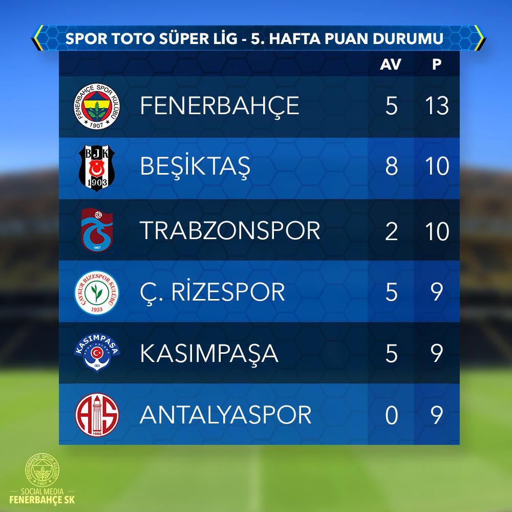 5. Hafta İtibariyle Puan Durumu!