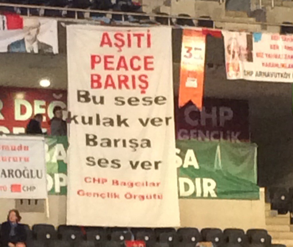 Burada önyargı ile yazanlara inat yerli yerinde duran afişte yazıldığı gibi "barış-aşiti" demeye devam edeceğiz.